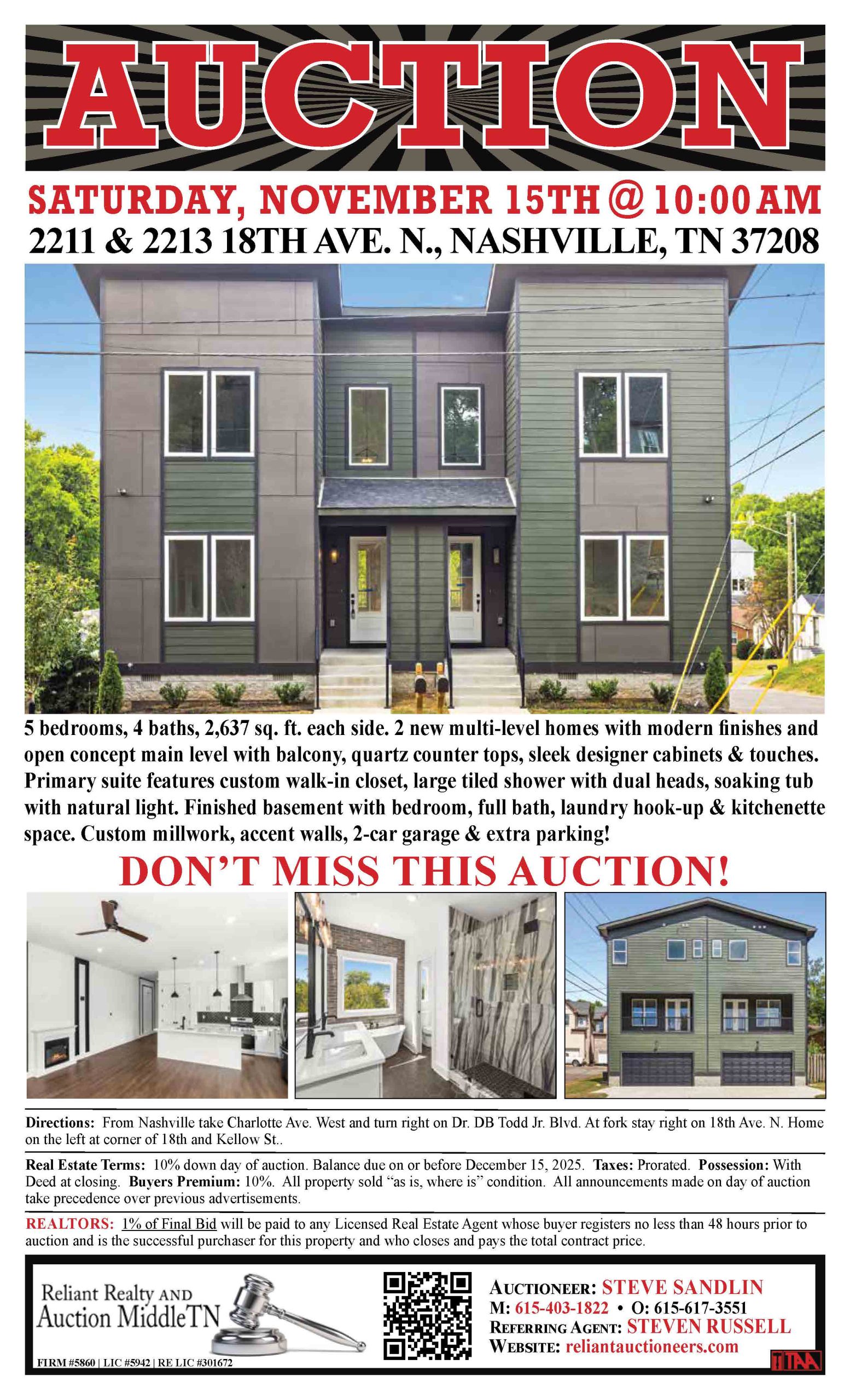 Reliant Auctioneers offers only the highest services when it comes to selling your property, Call Today!